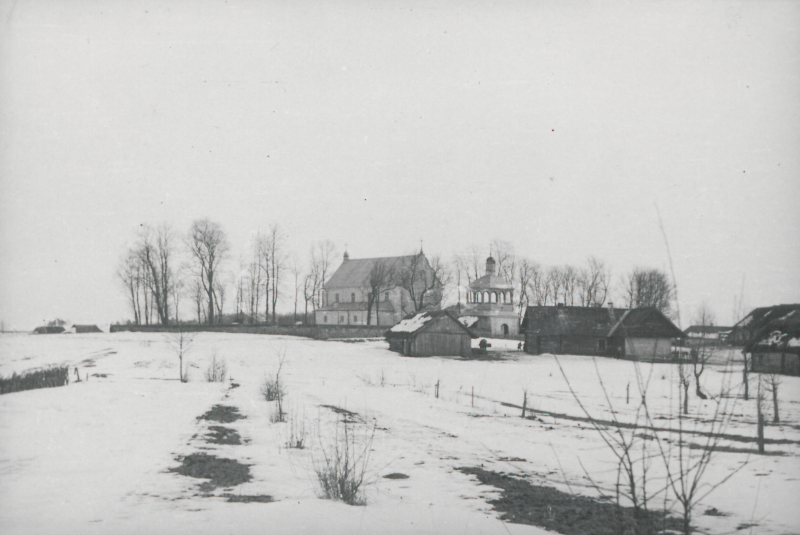Wystawiony w 1770 r. drewniany kościół pw. św. Michała Archanioła został ufundowany przez Michała Skarbek-Ważyńskiego (zm. 1773), pisarza wielkiego księstwa litewskiego, właściciela miejscowego majątku. Budynek, z dwiema zakrystiami, wybudowano na planie prostokąta. Posiada on formę trójnawowej bazyliki z prezbiterium zamkniętym pięciobocznie. Wysoki dach ma na krańcach dwie małe wieżyczki. Nawy boczne są niższe od głównej i nieco cofnięte. Szczyt fasady ozdobiony jest krzywoliniowym frontonem.